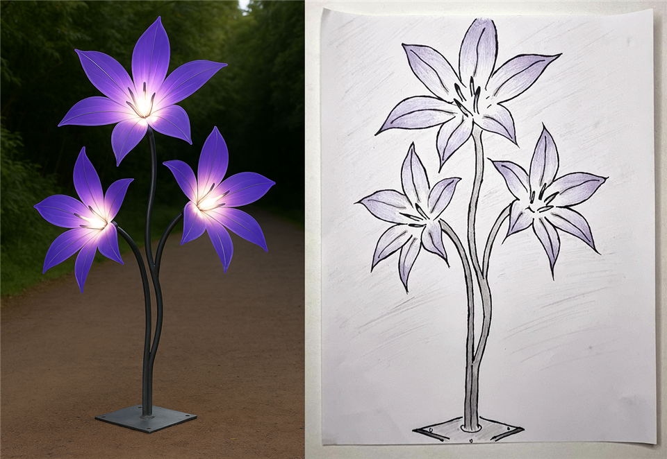 Evoking the quiet beauty of local meadows and forests, the sculptural flowers will appear to grow organically from the earth, casting tinted light onto the ground below and creating a playful and uplifting experience for park visitors. An accompanying plant identification plaque will provide educational context, encouraging viewers to learn about local flora and deepen their connection to Nanaimo’s natural environment. "Forest Flowers" will celebrate shared public space, local ecology and the joy of encountering art where it is least expected.