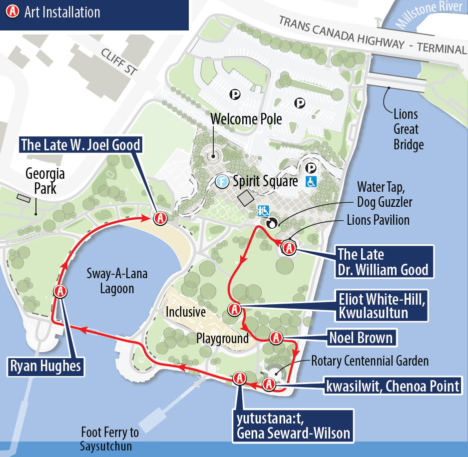 Join us in Sway-a-Lana (Maffeo Sutton Park) for a free public tour of Lighting a Path, a special art installation honouring the Land featuring artwork by seven Snuneymuxw artists. This tour will include an opportunity to hear from several of the exhibiting artists. We will meet in Spirit Square (next to the washrooms).