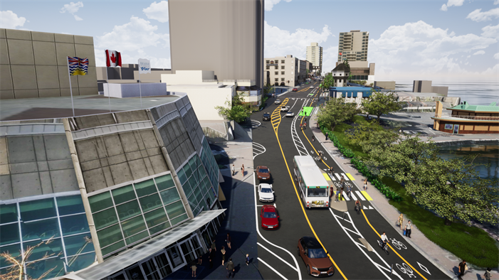 The Front Street Complete Street Project aims to increase the safety and comfort for people who walk, bike, take transit, and drive along one of Nanaimo's key downtown road corridors.