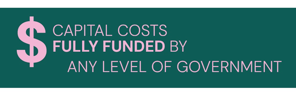- The capital costs of the development must be fully funded by any level of government.